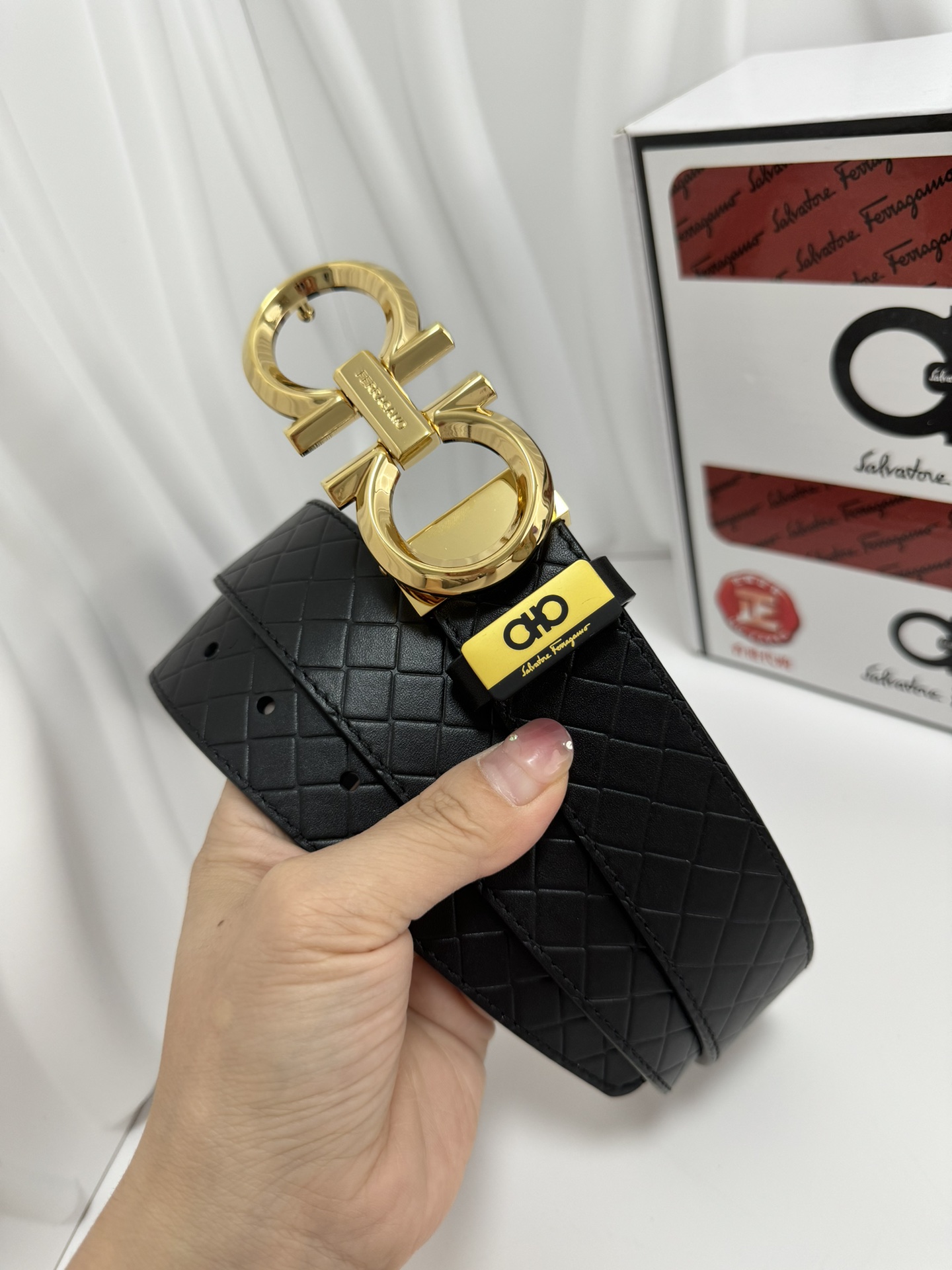 NO:4129654. La cintura è da Salvatore Ferragamo progettista.